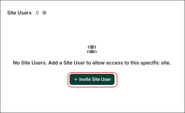 - On the Webcentral dashboard, on the Overview tab, scroll down to the Site Users section, and then click Invite Site User: