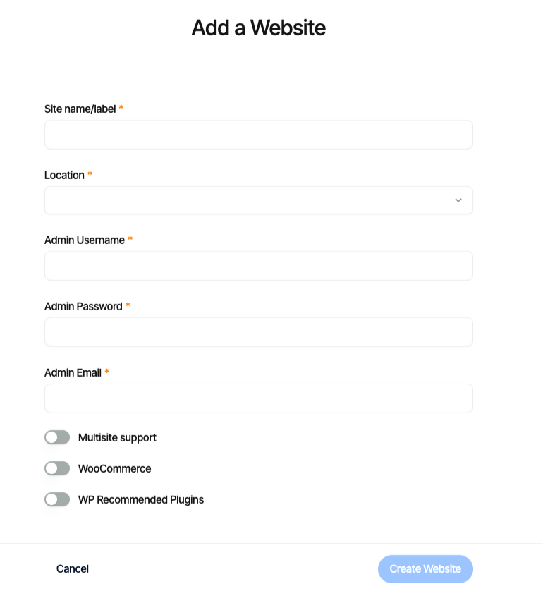 - On the Add a Website page, in the Site name/label text box, type your WordPress site’s name