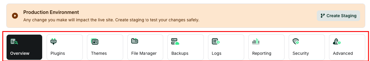 Staging environments give you a playground to test new plugins and themes, the latest PHP versions, code modifications, and other changes. When you create a staging site, it is a copy of your live site. When you’re ready, you can send all changes back to your live site with the click of a button.